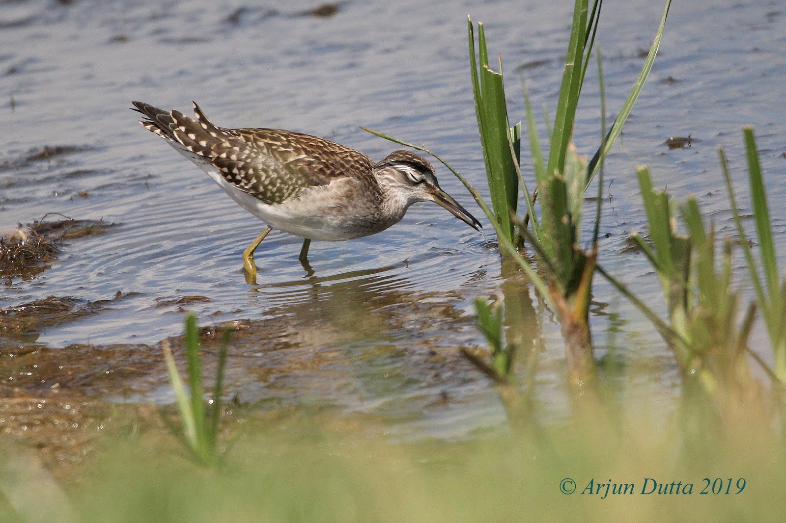 | Wood Sandpiper, Kilnsea - interesting to see that after every plunge into the water, the eyes were shut. |